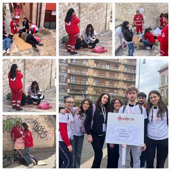 Gli alunni Paola De Cicco della 4^A sc., Giulia Ambrosino, Giada Bocola, Antonio Mazzei e Sarah Tenace della 4^C sc., Ludovica Cristalli, Margherita D’Amico e Alessandra Sarto della 4^D sc., Kasper Broniewicz della 4^E sc., Lorenzo Cologno e Angela Ianzano della 4^F sc., accompagnati dal prof. Michele Checola, hanno partecipato alla gara provinciale delle Olimpiadi di Primo Soccorso che si è svolta ad Andria domenica 24 marzo 2024.