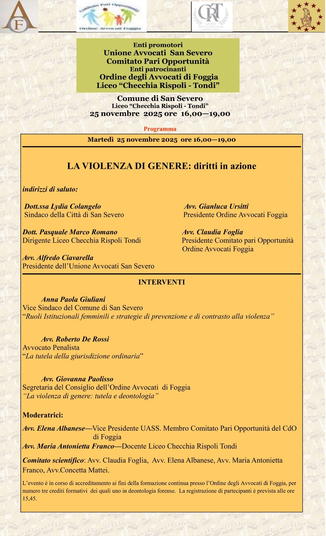 - Patrocinato da: Comitato Pari opportunità, Consiglio dell'Ordine degli Avvocati di Foggia