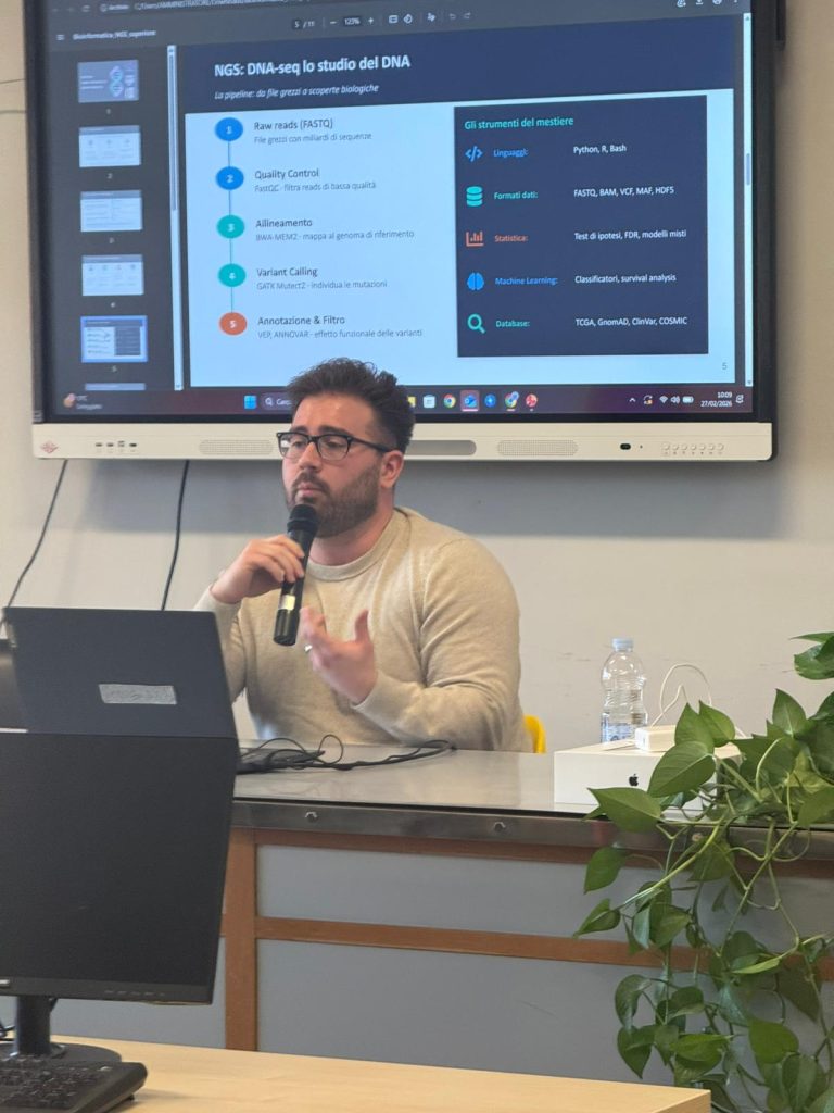 Nell’ambito delle attività di Promozione della Salute e di stili di vita sani e a corollario della partecipazione dell’Istituto alle iniziative a sostegno della Ricerca oncologica AIRC “I cioccolatini della salute” e “Le arance della salute”, venerdì 27 febbraio 2026 gli studenti delle classi quarte di entrambi gli indirizzi hanno partecipato a un incontro sulla ricerca oncologica con due ricercatori AIRC, il Dott. Thomas SIRCHI e la Dott.ssa Francesca LONGO, che operano presso l’IRCCS “Casa del Sollievo e della Sofferenza” di San Giovanni Rotondo.