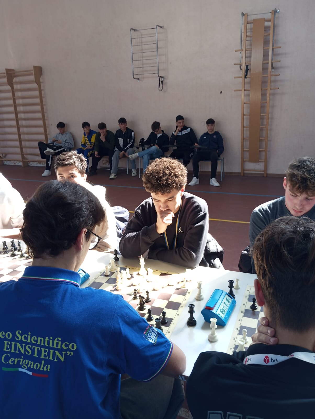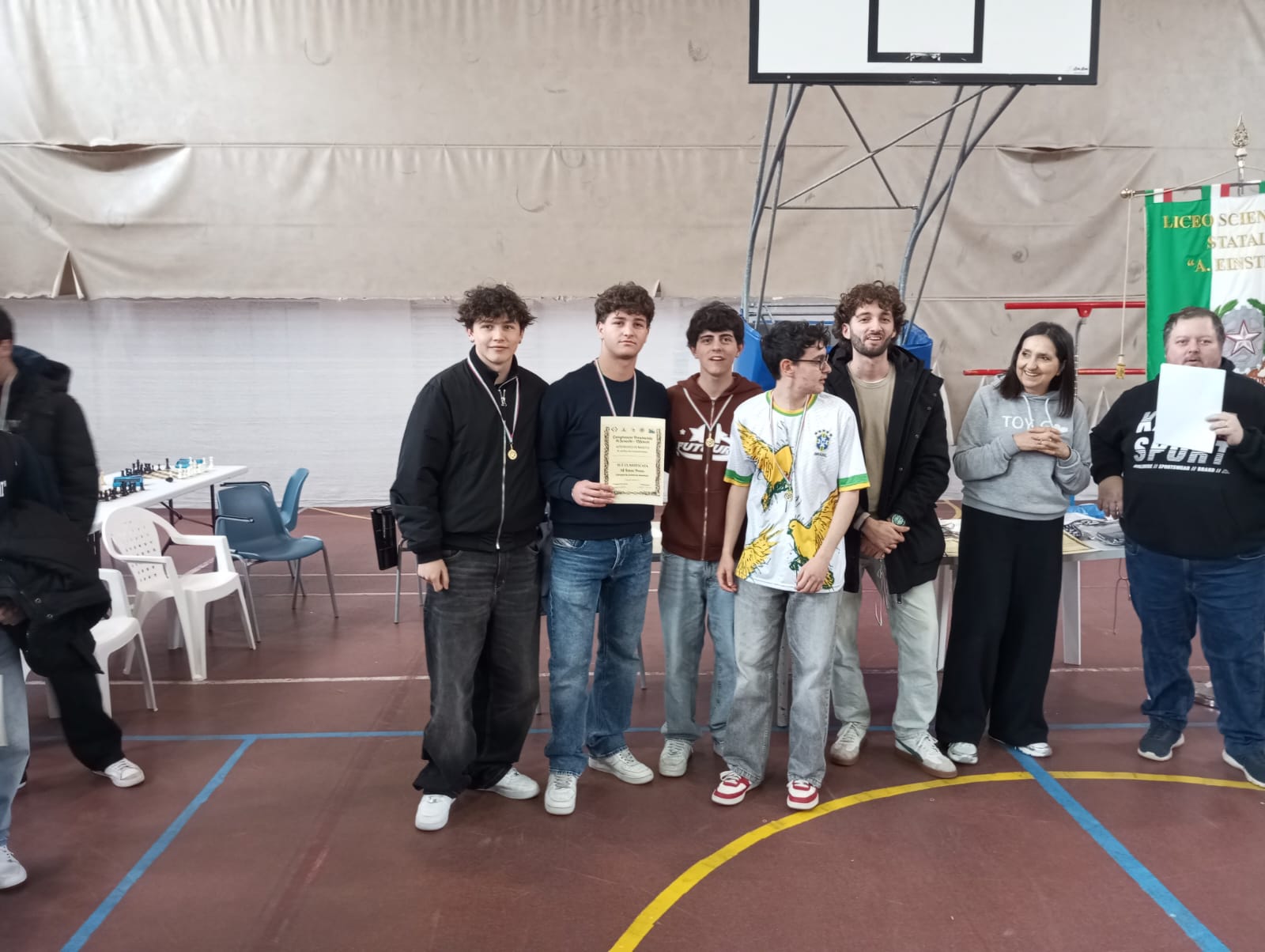 Martedì 24 marzo 2026, con inizio alle ore 8.30 presso il Liceo Scientifico Albert Einstein via Benedetto Croce – Cerignola si è svolto il Trofeo Scacchi scuola. Vi hanno partecipato gli studenti: D’Amico Marco 1^C sc, Fino Mario 1^Bsc, Gagliardi Giuseppe 5^Dsc, Manzo Salvatore 2^Dsc, Mascolo Matteo 5^Dsc, Mucedola Raffaele 5^Dsc, Salvitto Raffaele 5^Dsc, allenati dal prof. Michele CHECOLA. Ottimo il risultato dei nostri studenti, che si sono classificati alle fasi regionali, grazie al terzo posto dei nostri studenti, nella categoria junior. Ottimo piazzamento anche per i piccolini della categoria “allievi”, alla loro prima partecipazione in una competizione di questo tipo, che hanno raggiunto il quinto posto.